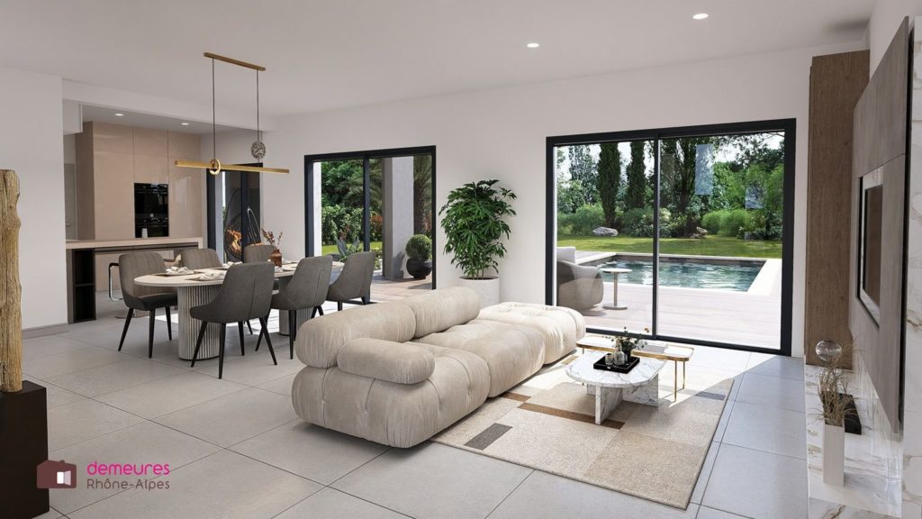 Cette construction de maison par Demeures Rhône Alpes est la plus encline à répondre à votre envie de maison d’architecte.